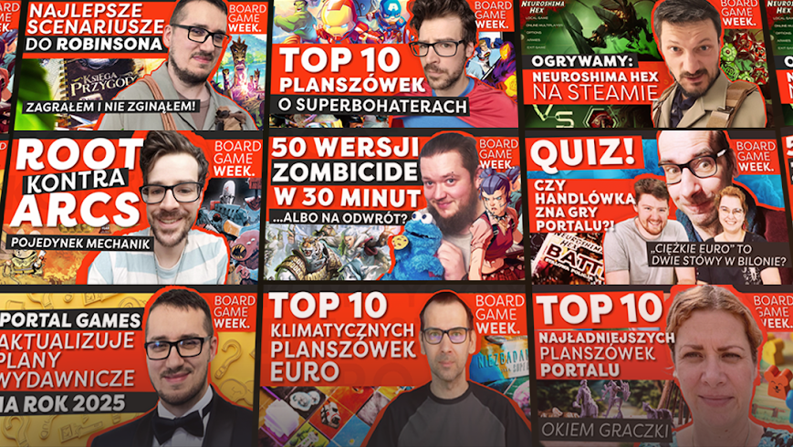 W ramach BoardGameWeek każdy dzień będziemy zaczynać Planszowym Ekspresem o godzinie 8 rano. Do tego codziennie na nasz YouTube wjadą dwa filmy – Janek opowie o superbohaterach w planszówkach, Asia opowie o najpiękniejszych grach planszowych, Grzegorz o swoich ulubionych scenariuszach do Robinsona Crusoe, a Maciek zrobi wykład o Zombicide. Poniedziałek, wtorek, środa… cały tydzień nadajemy na YouTube i wrzucamy mega fajne materiały.